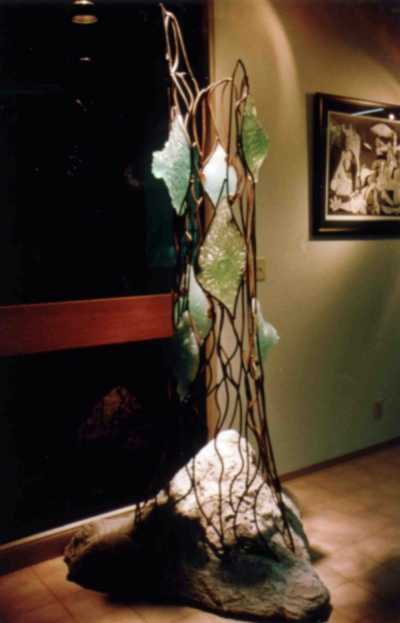 | Title: | Last Refuge of the Wood Spirits | | Category: | Sculpture | | Materials: | Mixed media sculpture (Concrete, re-inforcing bar, window glass) | | Dimensions: | 200 cm x 87 cm x 85 cm | | Location: | Xynyth Manufacturing Head Office, Burnaby, BC | | Year: | 1995 | | Price: | Available on request |